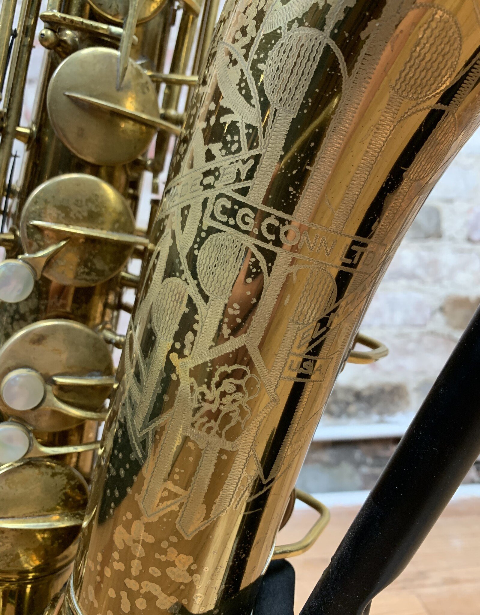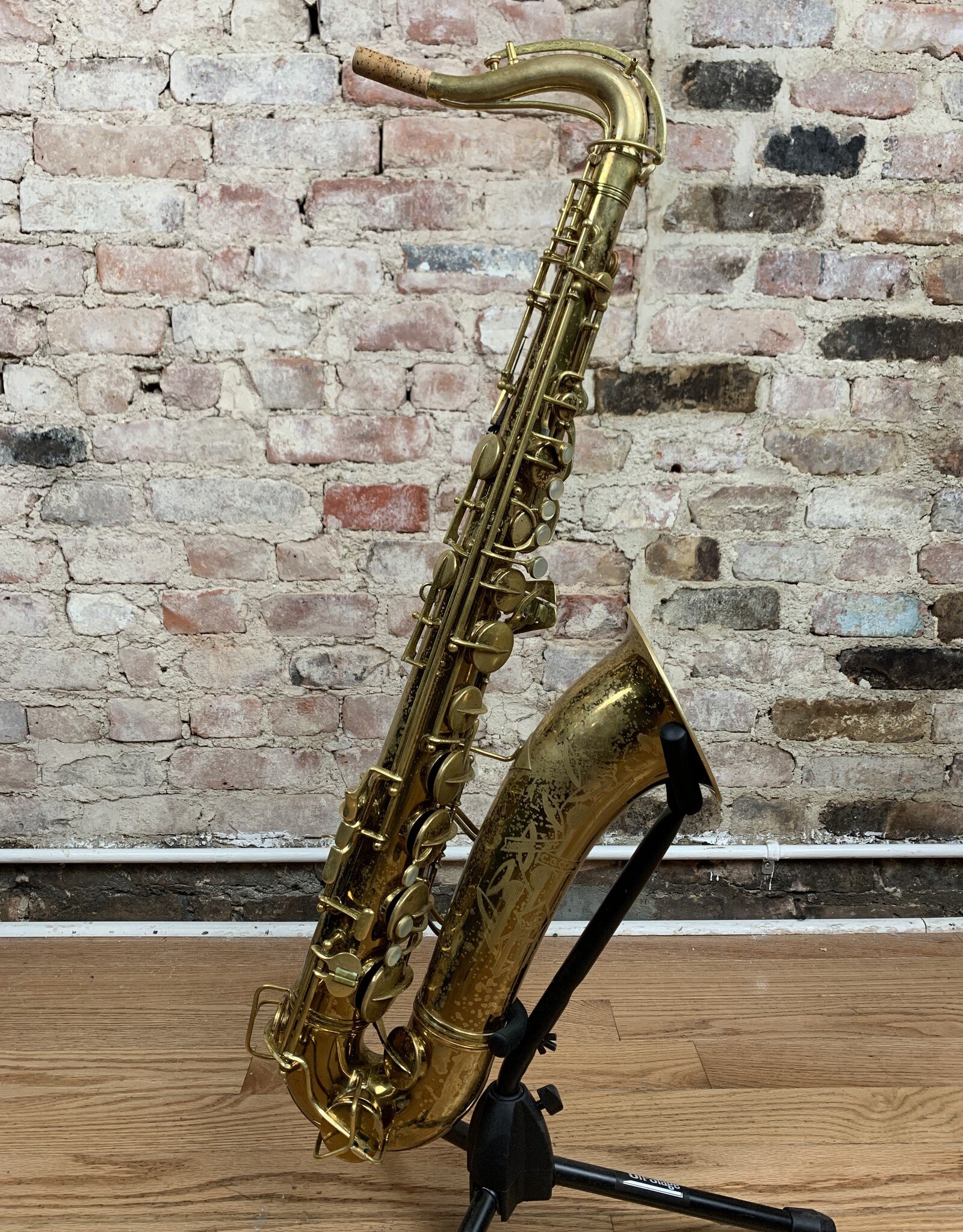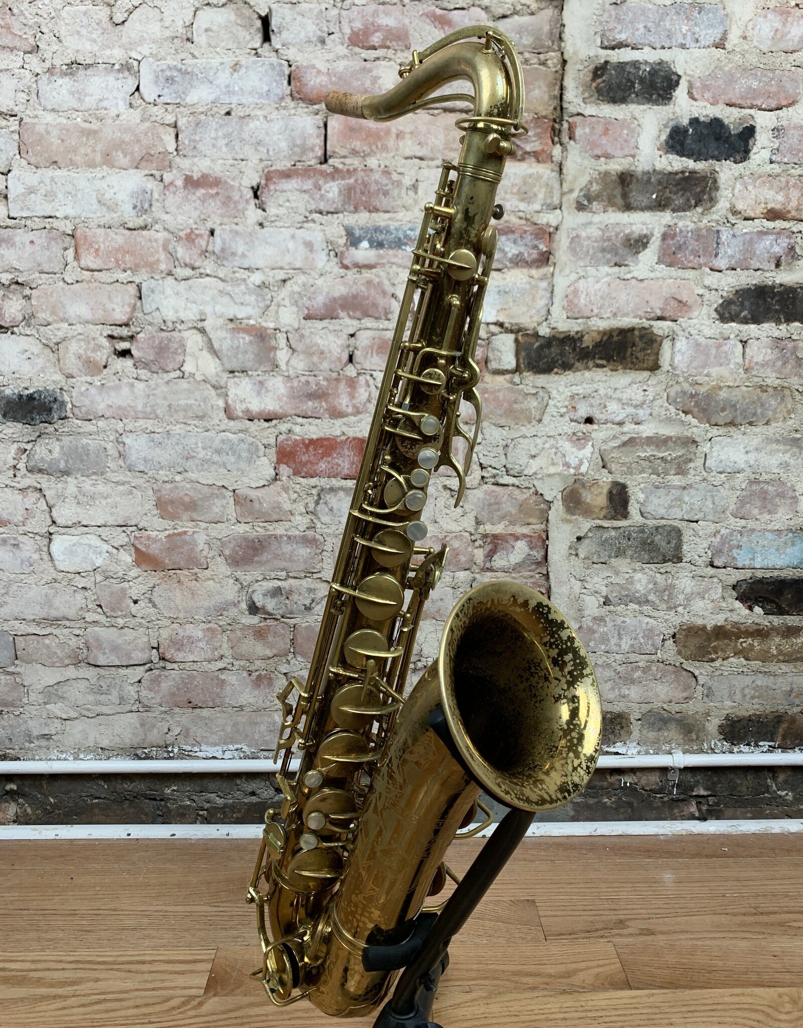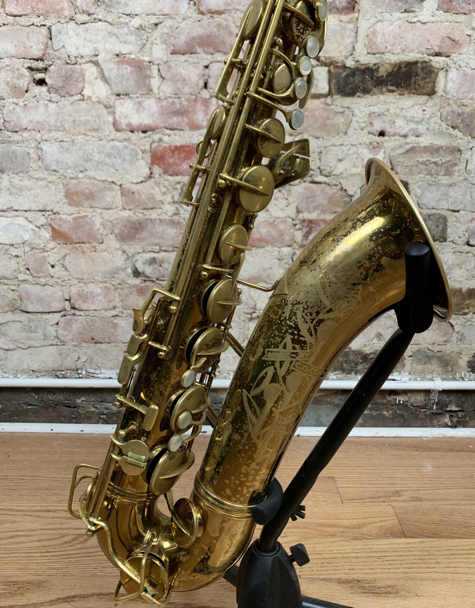 Wow! Look at this gorgeous original lacquer pre-war Conn 10M tenor with rolled tone holes! 295xxx Serial number places the year of production to 1941. This amazing tenor has a fantastic tone throughout all ranges. It has been freshly professionally overhauled with all new pads, corks, and felts from top to bottom. It needs absolutely nothing and is ready for gigging! The iconic naked lady engravings are extremely crisp and pop though the original lacquer beautifully. The original neck is also in nearly perfect condition which can be quite rare for Conns of this vintage. If you have been wanting to find a Conn 10M tenor that checks all the boxes, look no further! This one will not be available for long!