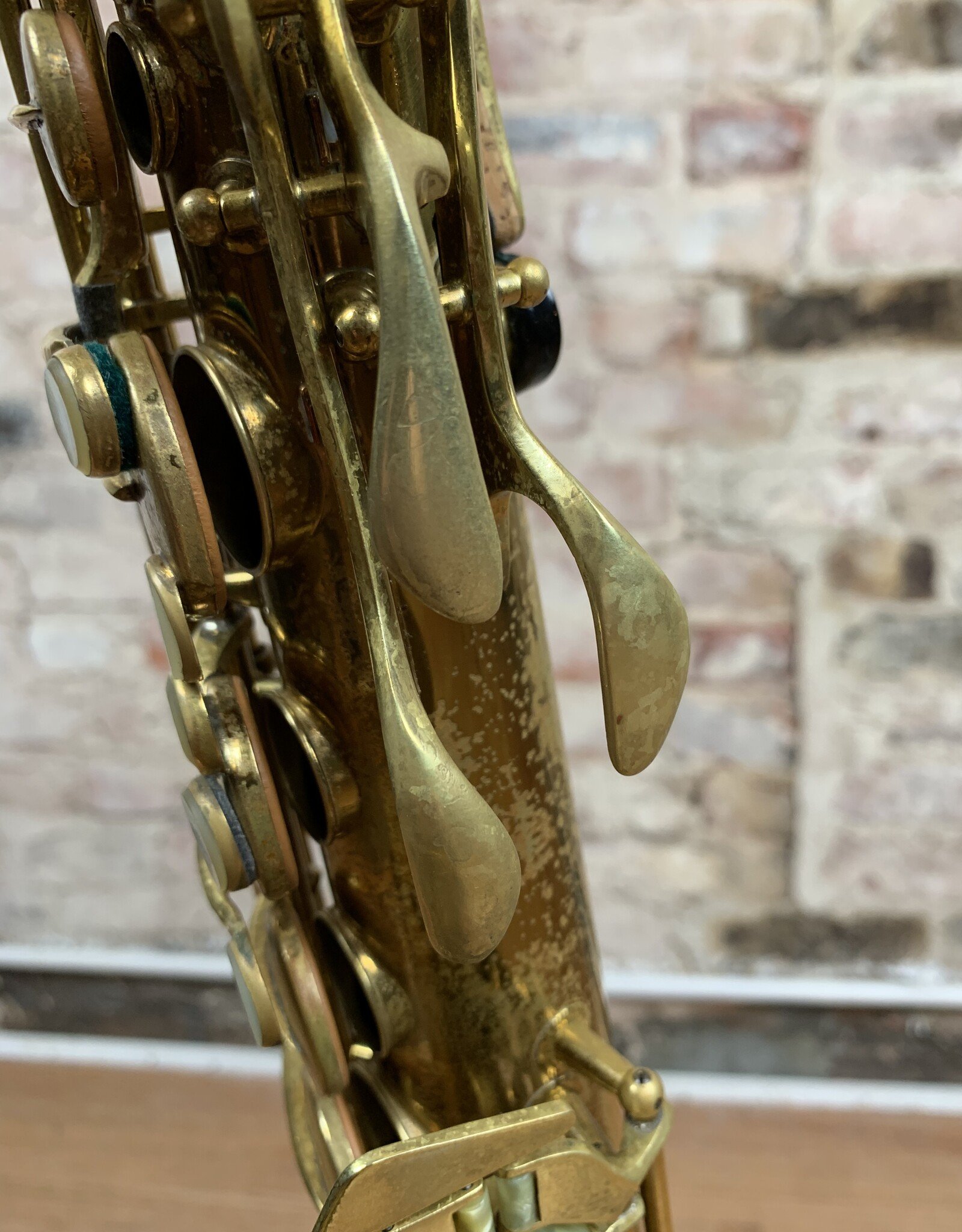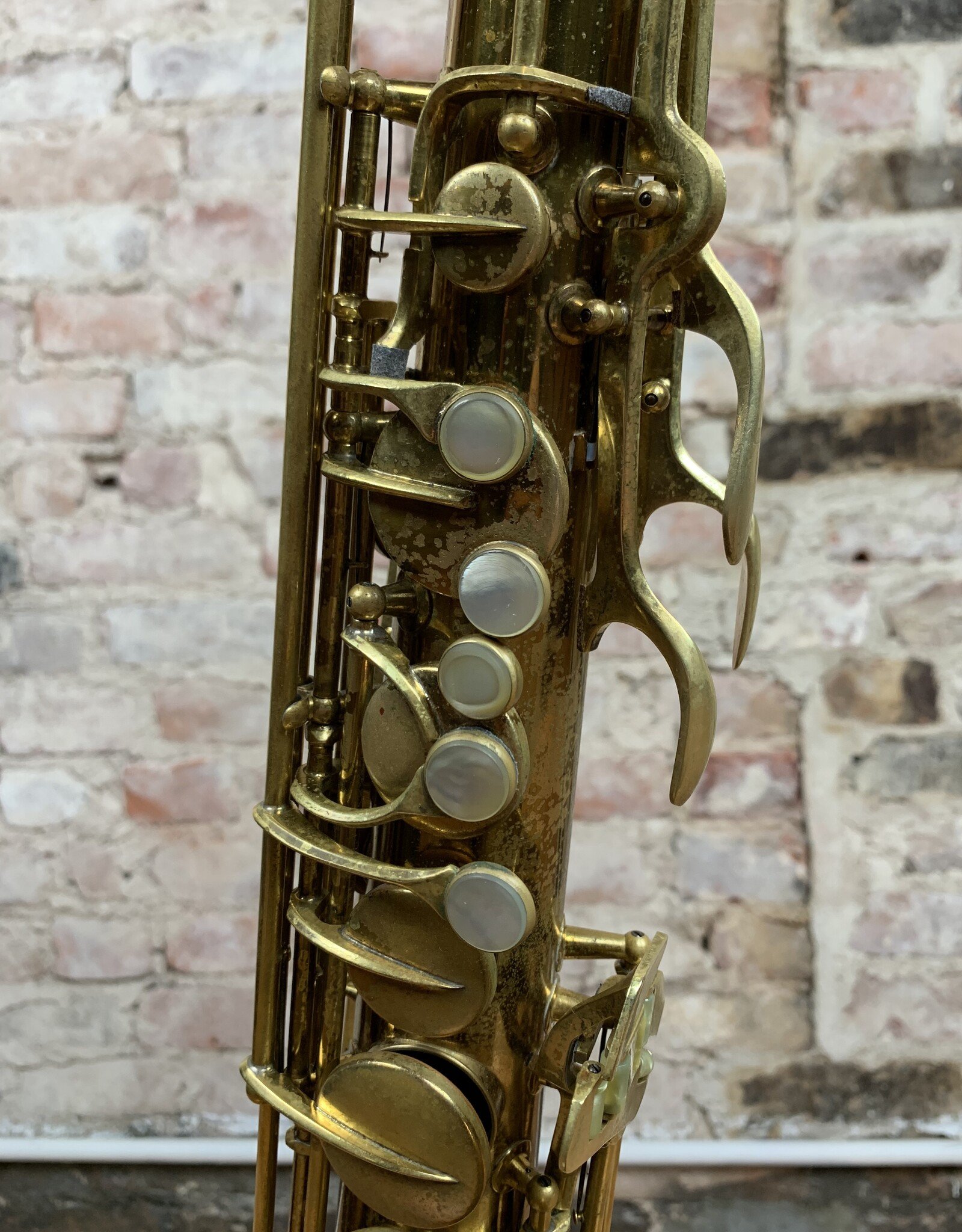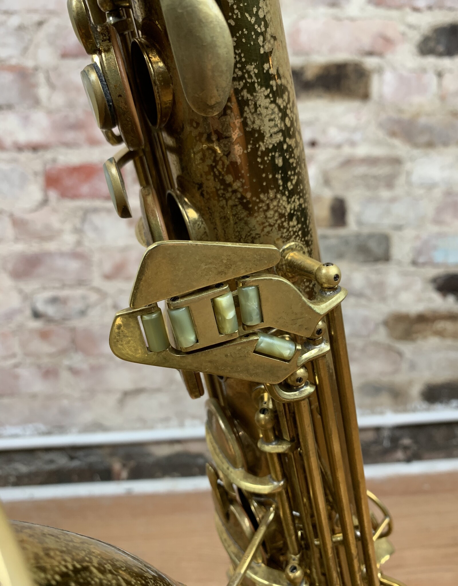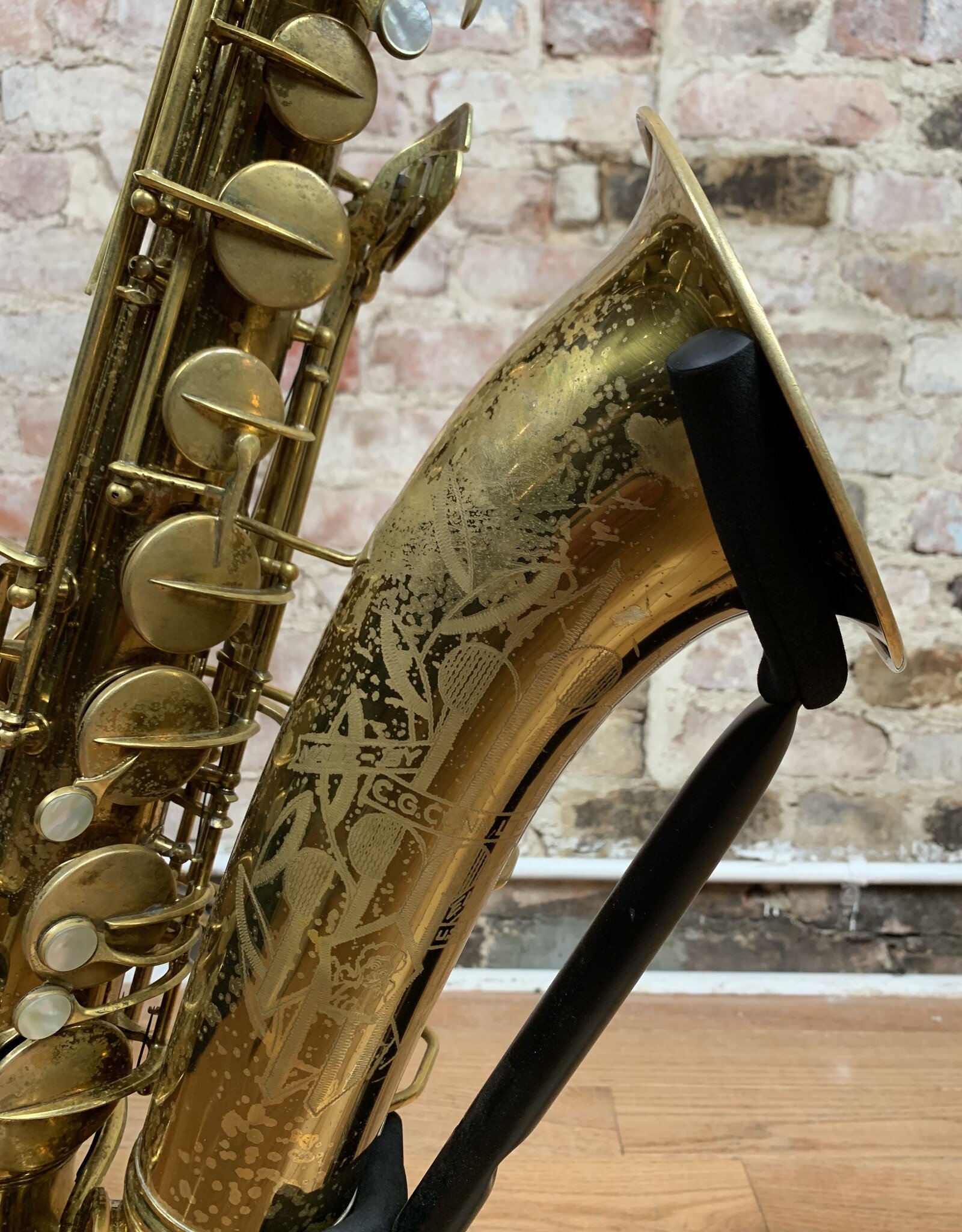 Wow! Look at this gorgeous original lacquer pre-war Conn 10M tenor with rolled tone holes! 295xxx Serial number places the year of production to 1941. This amazing tenor has a fantastic tone throughout all ranges. It has been freshly professionally overhauled with all new pads, corks, and felts from top to bottom. It needs absolutely nothing and is ready for gigging! The iconic naked lady engravings are extremely crisp and pop though the original lacquer beautifully. The original neck is also in nearly perfect condition which can be quite rare for Conns of this vintage. If you have been wanting to find a Conn 10M tenor that checks all the boxes, look no further! This one will not be available for long!