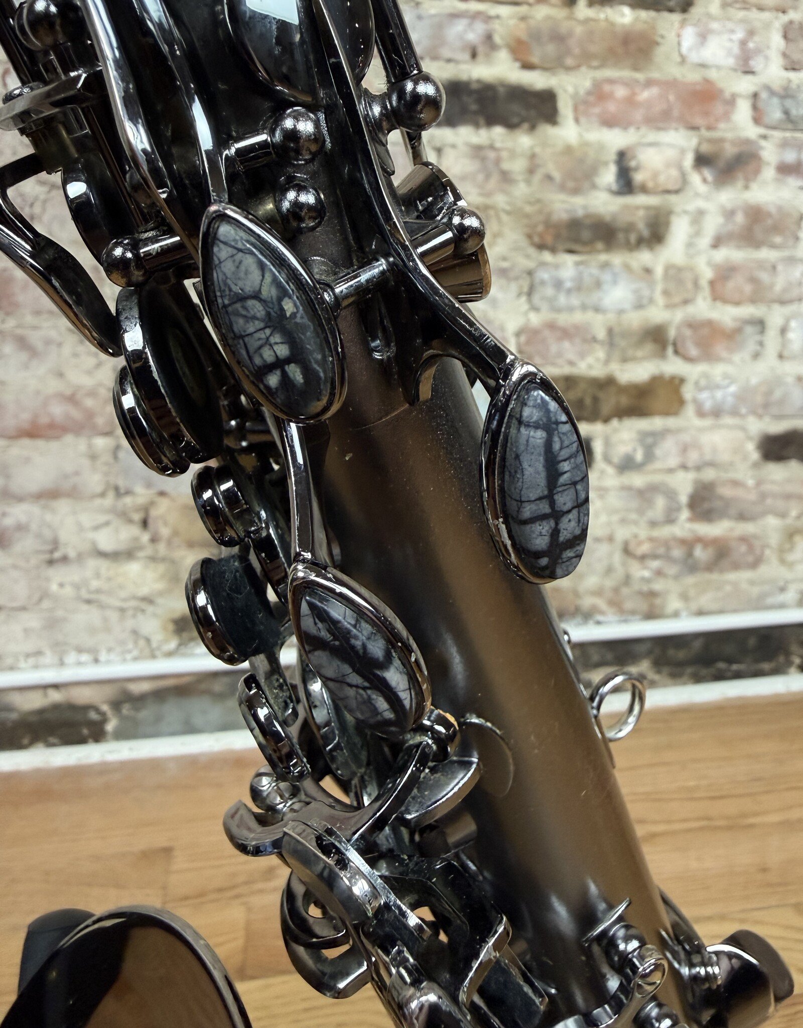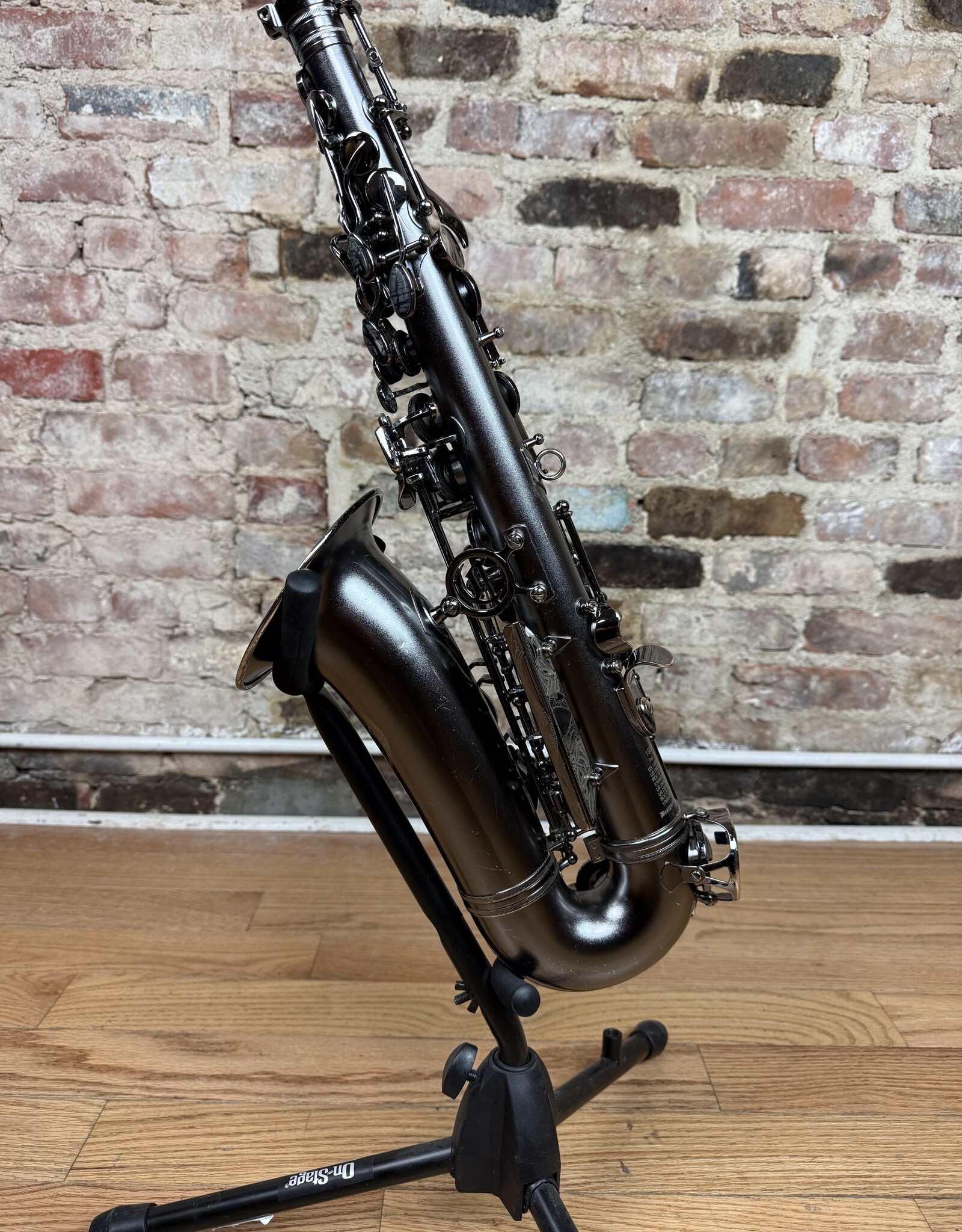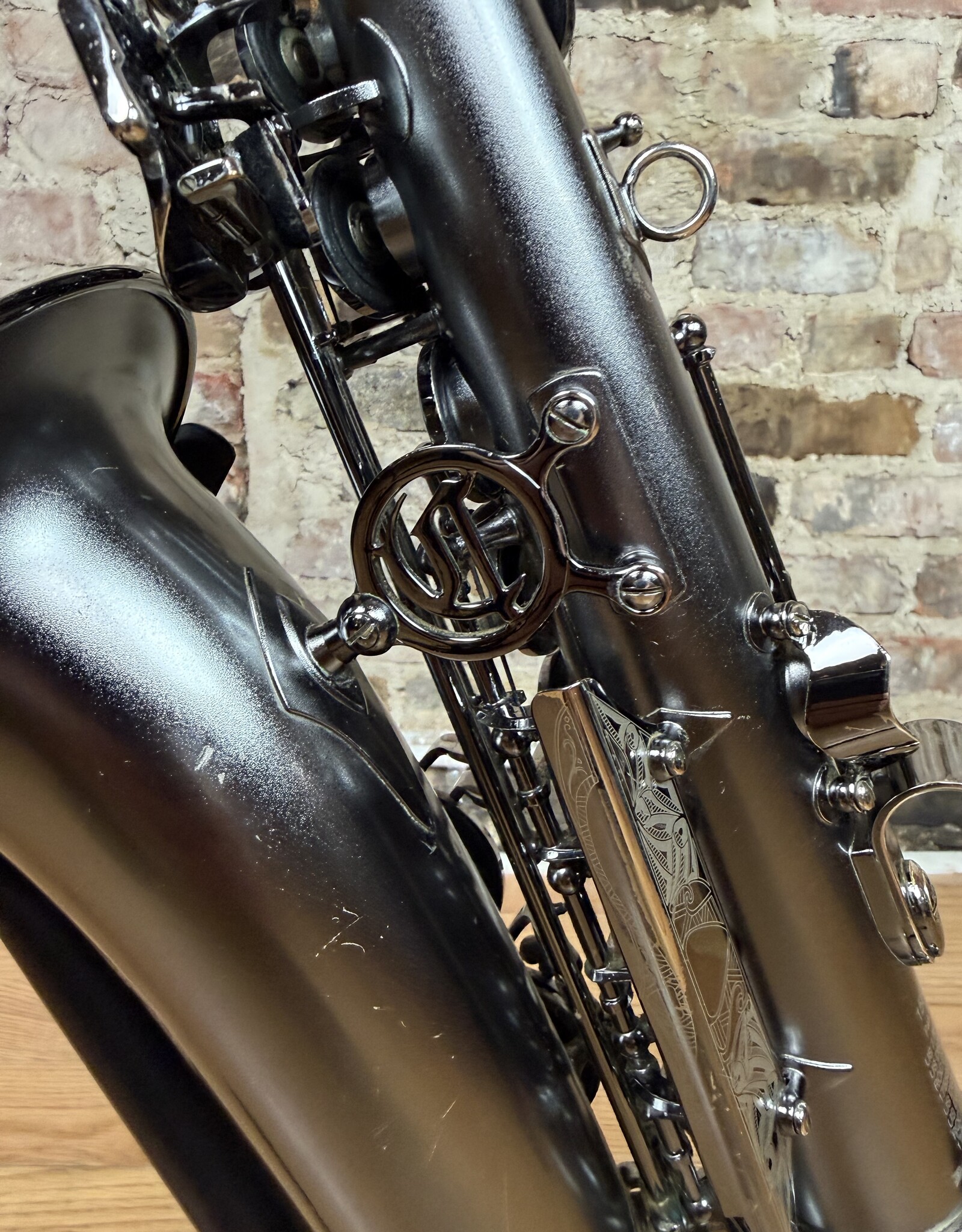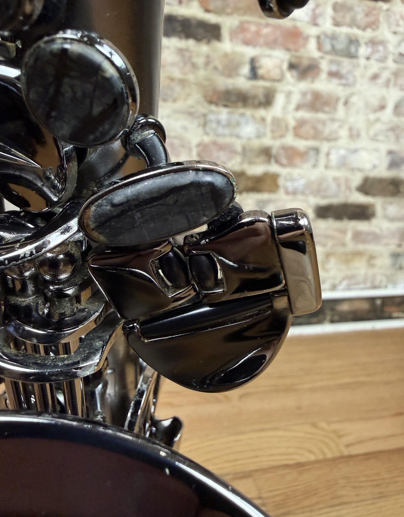 Just into our shop is this pre owned Cannonball alto! This is a Big Bell Stone Series Raven model alto in the dark nickel finish. This alto came to us with only the Fat neck option. The body is overall quite clean with minimal finish wearing or scratching. This alto received a full clean, oil, and adjust from our shop and is ready to gig on!